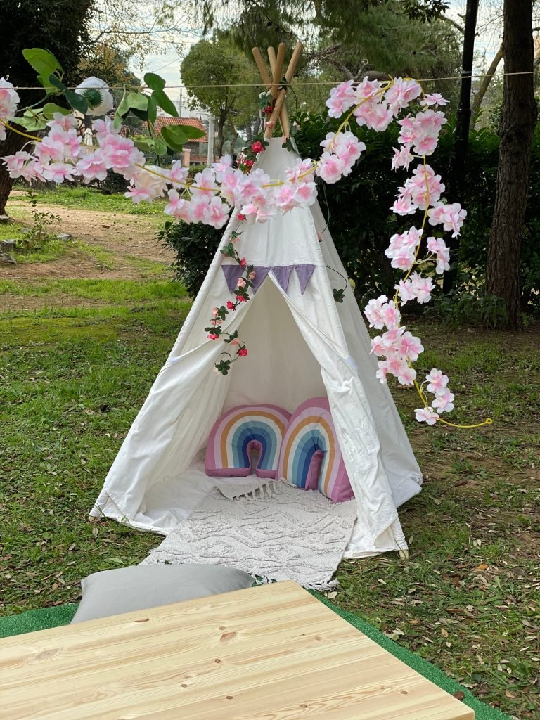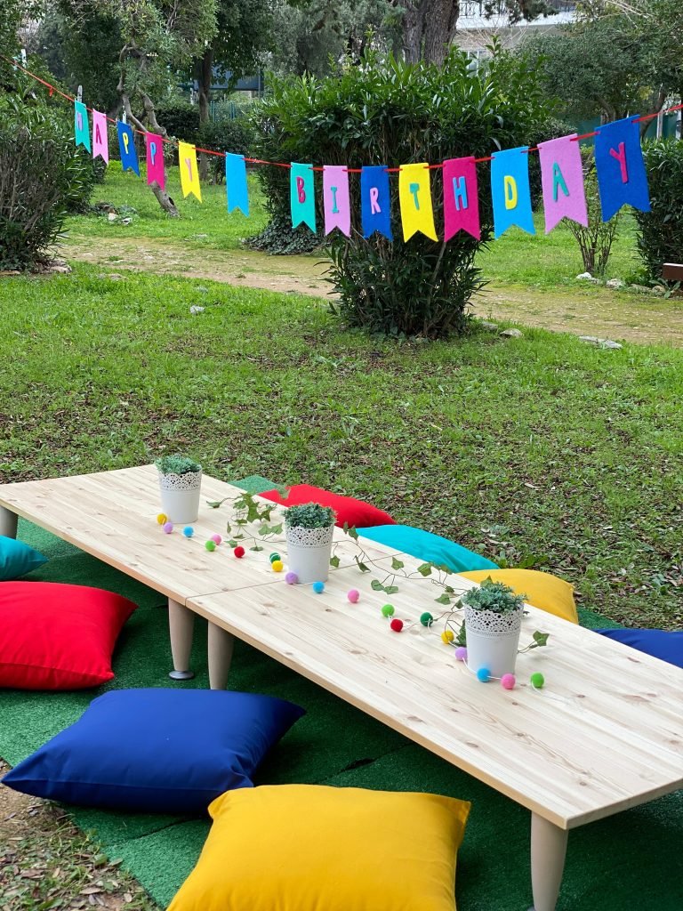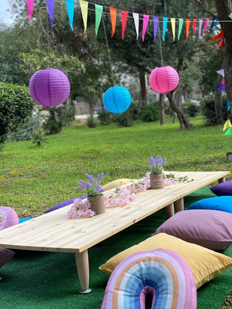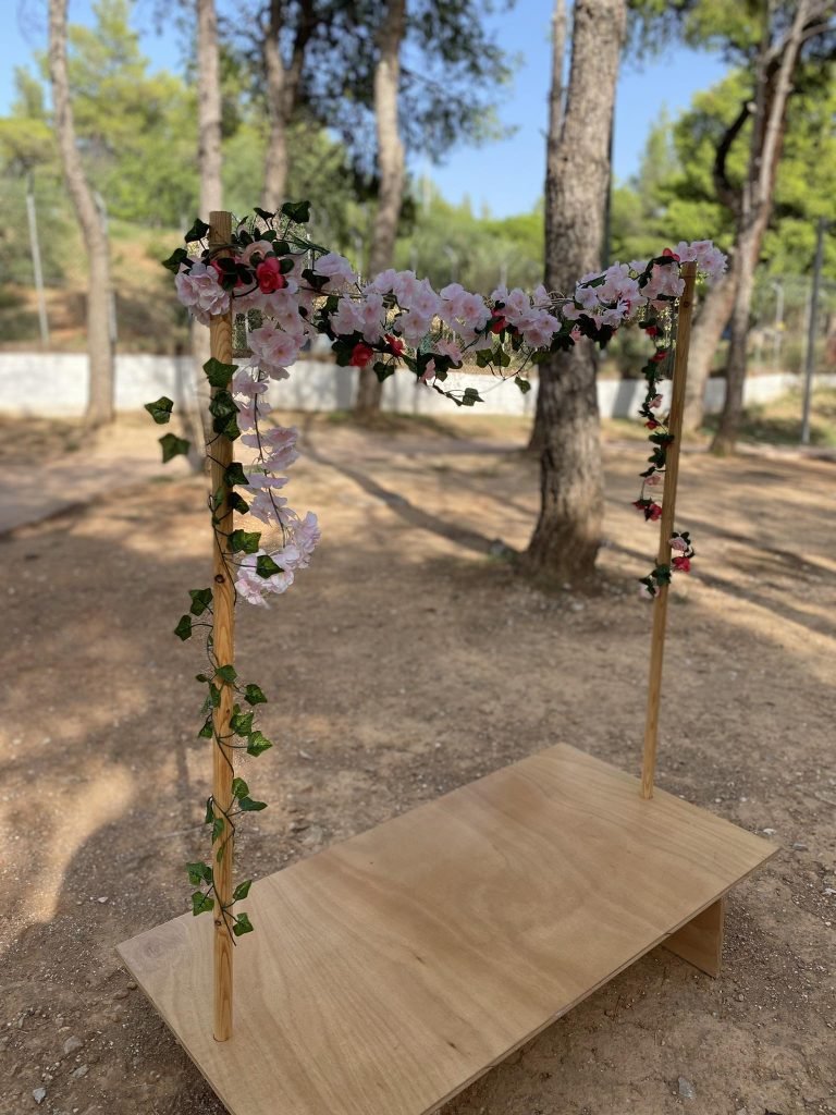 Χαμηλό Τραπέζι με δοκούς στήριξης και λουλούδια